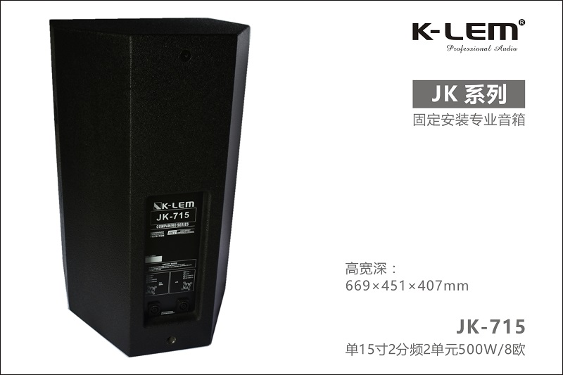 1、JK-715是一款全頻多用途兩分頻揚(yáng)聲器,可應(yīng)用于固定安裝﹑廳堂擴(kuò)聲﹑流動(dòng)演出以及大型擴(kuò)聲系統(tǒng)的輔助補(bǔ)聲等等。經(jīng)過CMD覆蓋匹配設(shè)計(jì)的高頻號角與低頻單元的覆蓋特性實(shí)現(xiàn)了平順的過渡,與號角連接的高頻驅(qū)動(dòng)單元是一個(gè)頻響平滑寬廣的2.5寸音圈64芯,1.5寸喉管的全鋁磁精密的高頻壓縮驅(qū)動(dòng)器;低頻揚(yáng)聲器為 15寸紙盆(3寸音圈口徑,190磁75芯)的精密低頻單元。