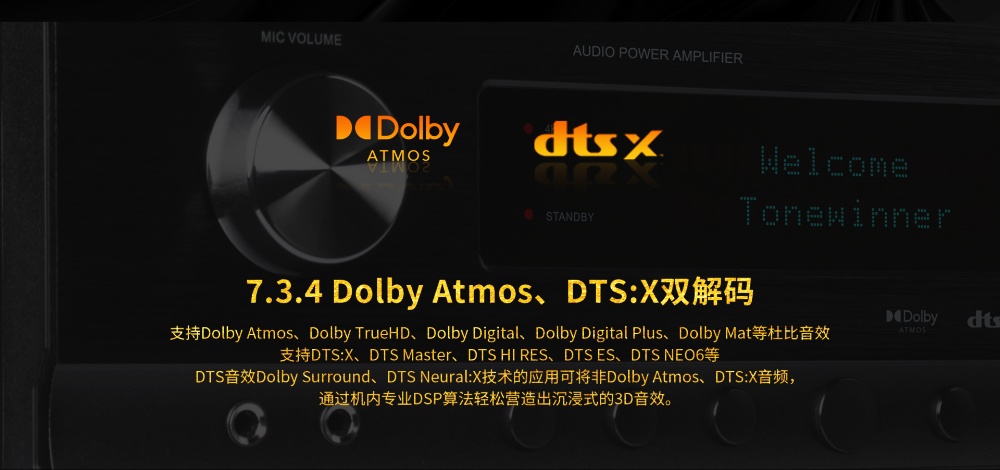支持Dolby Atmos、支持DTS:X等沉浸式音效解碼