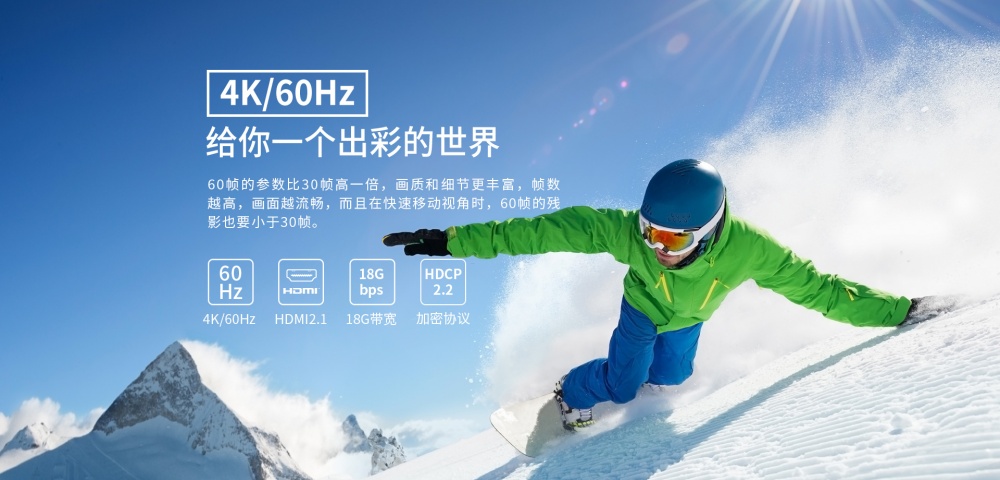 支持4K/60Hz,RGB 4:4:4,18GHz全帶寬視頻信號(hào),