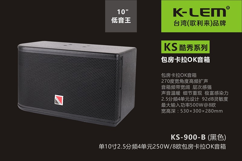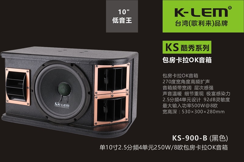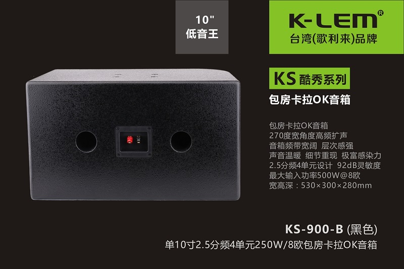 5、KS-900包房音箱配置了低音10寸(120磁51芯,臺灣泡邊)×1只+中高音3寸(方形,帶導(dǎo)向控制盒,雙磁)×1只(上下150度,左右15度方向擴(kuò)聲,有效地加強(qiáng)了中高頻在主區(qū)的落地感及穿透性,厚實(shí)穩(wěn)重)+泛高音3寸(方形,帶導(dǎo)向控制盒,雙磁)×2只(左右150度,上下15度方向擴(kuò)聲,或朝墻面擴(kuò)聲反射,或加強(qiáng)主區(qū),延伸細(xì)節(jié)宣染力,疊加投射寬度與厚度)。