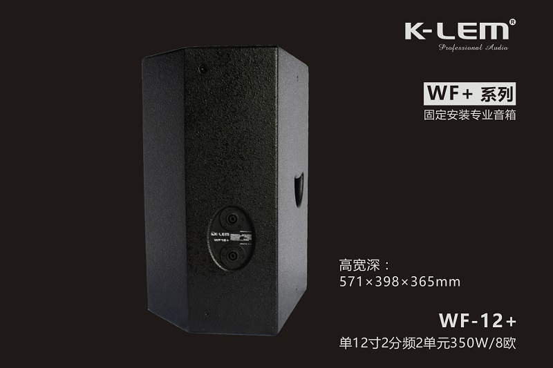 2、WF-12+為二分頻全音域音箱,裝配有鋁盆架1只12寸(170磁65芯)鋁架低音單元,配合1.5寸(34芯)震膜壓縮驅(qū)動高音,擁有極優(yōu)良的傳輸特性;