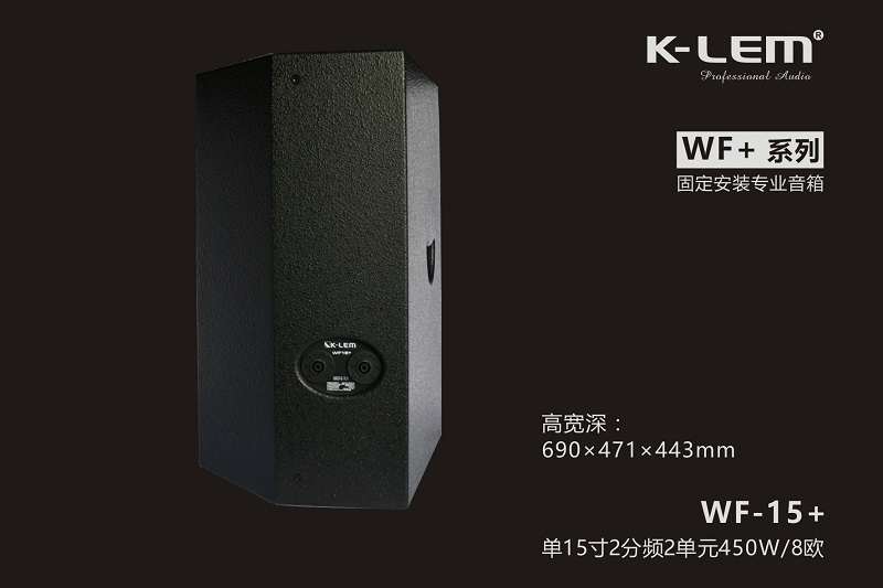 2、WF-15+為二分頻全音域音箱,裝配有鋁盆架1只15寸(190磁75芯)鋁架低音單元,配合2寸(44芯)震膜壓縮驅(qū)動(dòng)高音,擁有極優(yōu)良的傳輸特性;
