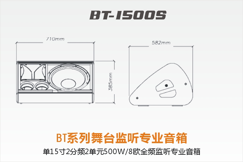 BT-1500S:單15寸2分頻2單元500W/8歐全頻監(jiān)聽專業(yè)音箱