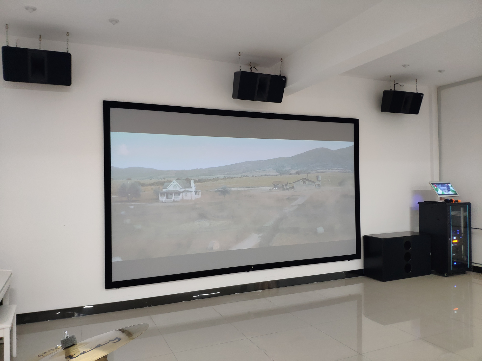 實現(xiàn)功能:4K視頻+180寸畫框幕+正版影庫+專業(yè)KTV+會議主持+電視節(jié)目