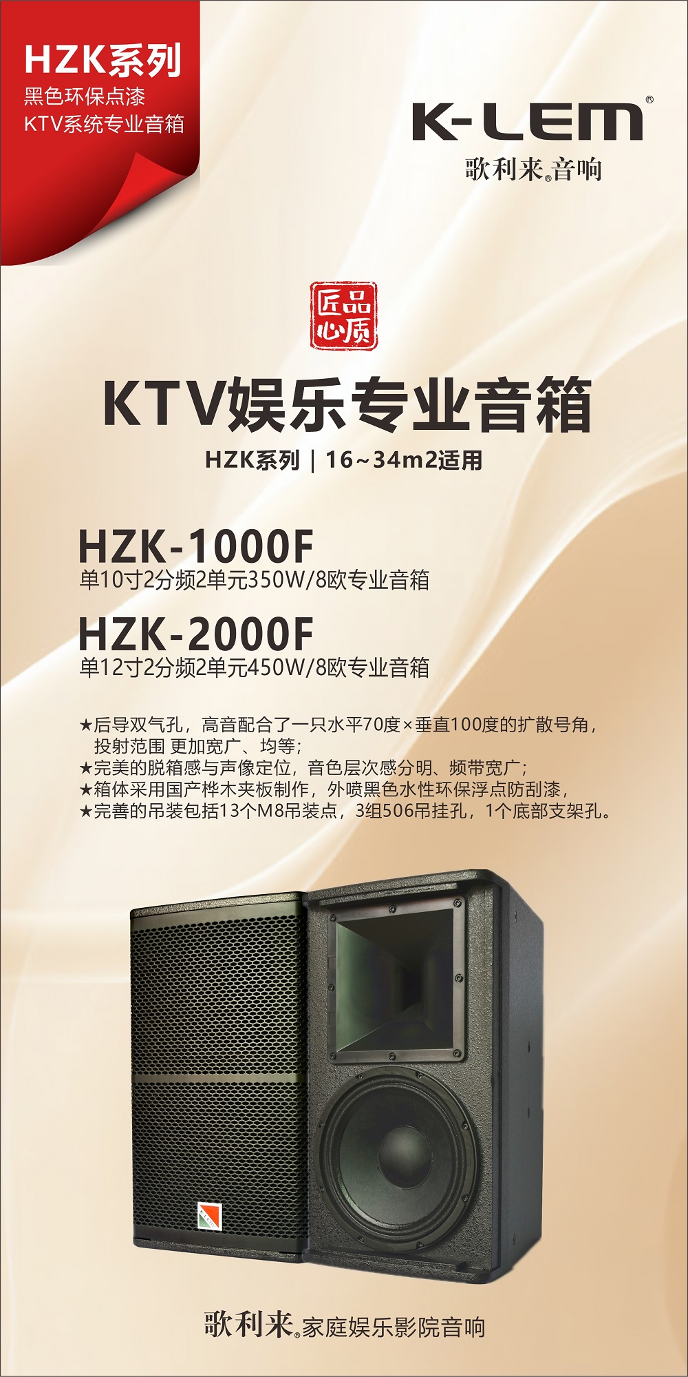HZK系列專業(yè)音箱是針對固定安裝、房間卡拉OK、廳堂音樂播放、高質(zhì)量語言擴(kuò)聲、中小型演藝領(lǐng)域而開發(fā)生產(chǎn)的一款高標(biāo)準(zhǔn)、高配置的專業(yè)音箱系統(tǒng)。