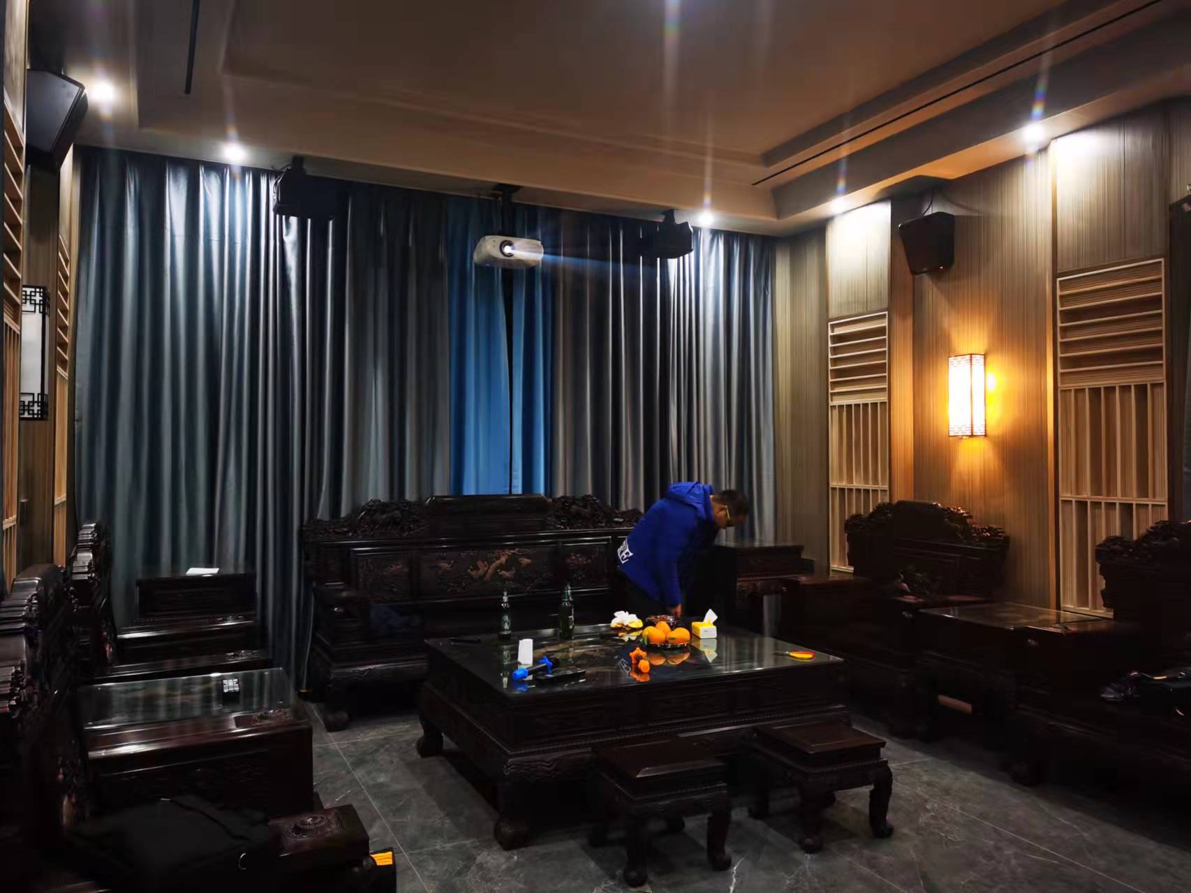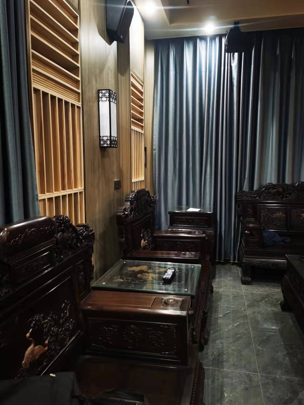 2、室內(nèi)的隔音減震、擴散處理,完工后房間的混響系數(shù)控制在0.9左右,符合電影+K功能聲場的需求。