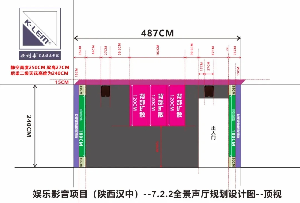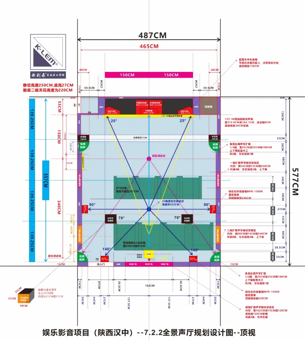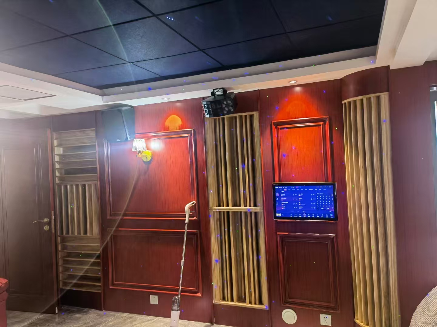 2、室內(nèi)的隔音減震、擴散處理,完工后房間的混響系數(shù)控制在0.8左右,符合影+K功能聲場的需求。