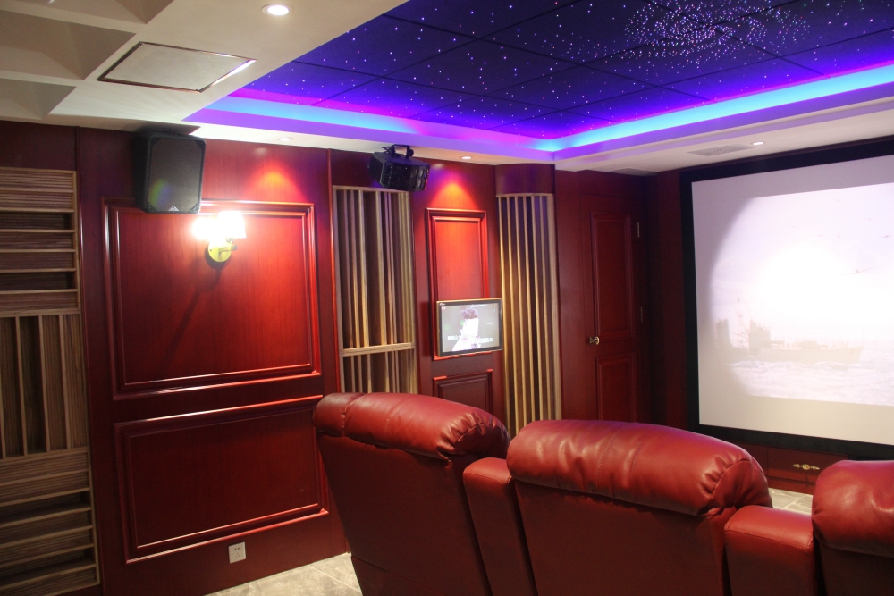 1、由于影音室的高寬深比例按照1:1.26:1.59黃金設(shè)計,雖然是小空間,房型高度不夠,但聲音空間的傳播理想,沒有出現(xiàn)過多的疊加破壞。