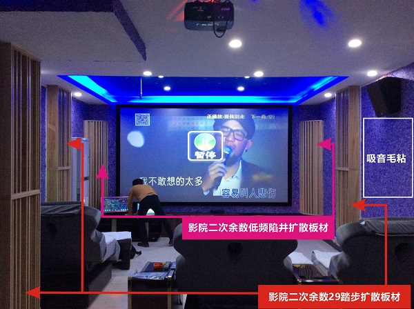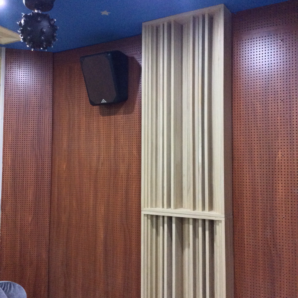 大投入地引進專業(yè)吸聲、擴散板材(吸音板、29踏步擴散板、低頻陷井等)運用在每個房音,務求達到最佳聲學效果。墻面配合運用吸音毛粘來做一次初級反射吸音,效果非常理想。
