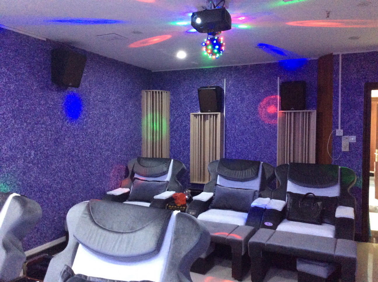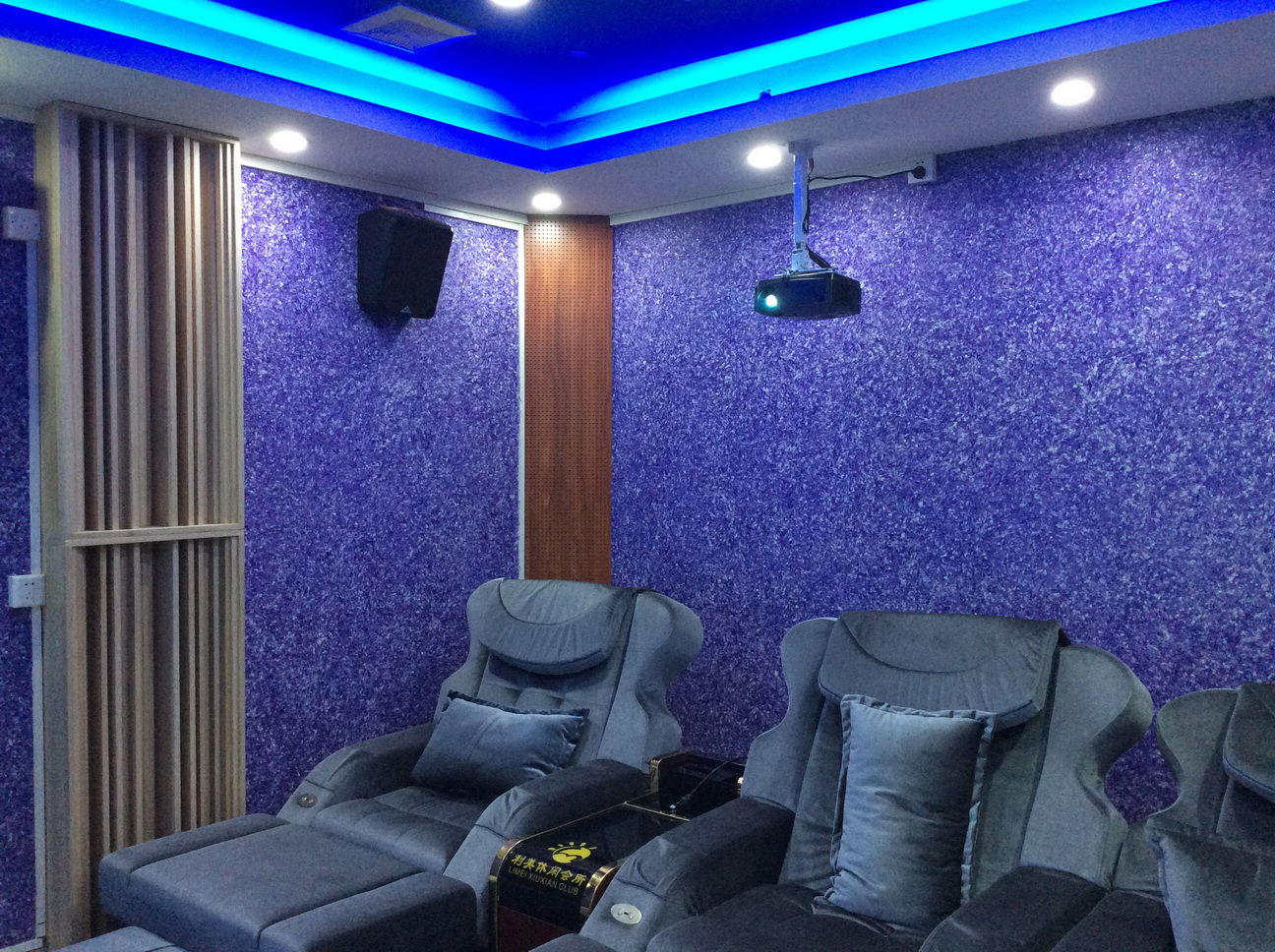 利美休閑會所沐足影院有9個房間+1個休息大廳,投資方在電源管理、聲學處理、燈光控制方面給予了積極的配合與肯定。