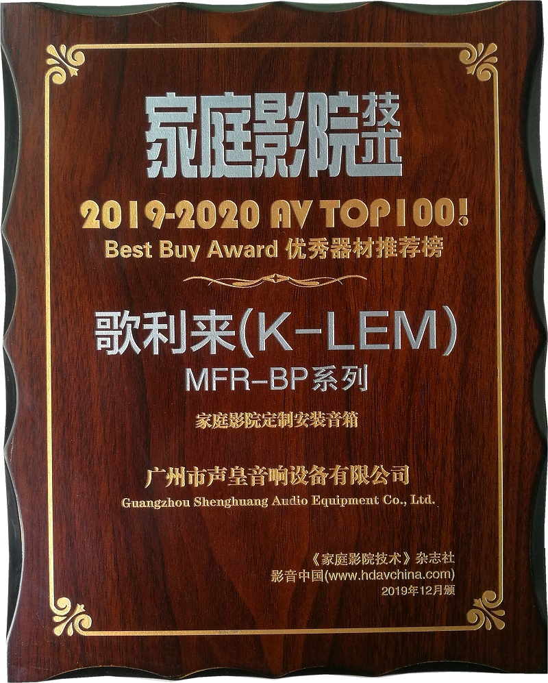 歌利來K-LEM品牌 MFR-BP系列 入選“ 家庭影院定制安裝音箱”組類